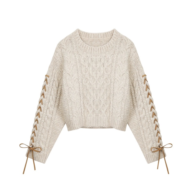 Retro short striped knitted long-sleeve loose bow tie design niche sweater |
