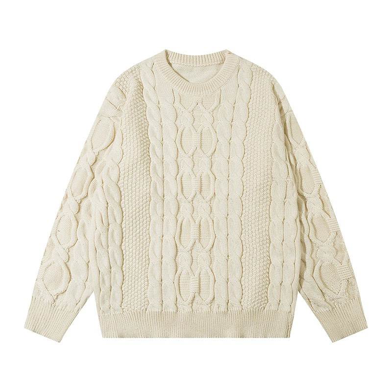 Round-neck Japanese-style twisted loose sweater for outerwear Hong Kong-style knitted jacket |